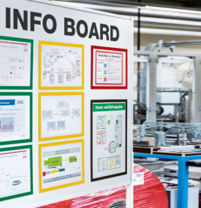 En intégrant les cadres DURAFRAME® à vos panneaux de management visuel, tableaux d’objectifs ou murs d’informations, vous facilitez la circulation de l’information et créez un environnement de travail plus transparent, plus participatif et plus efficace.